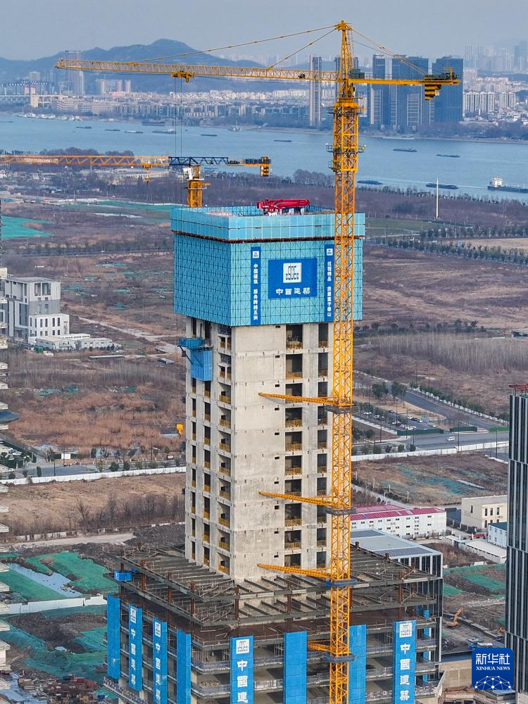 当日,在江苏省南京市江北新金融中心一期项目施工现场,承建方中建三局运用“空中造楼机”进行项目封顶前的最后一次顶升作业,各项施工稳步推进。据介绍,该项目建造采用智能集成“空中造楼机”,提高了高层建筑施工的机械化、智能化及绿色施工水平,让“高空作业”变为“室内施工”,施工效能提升约20%。