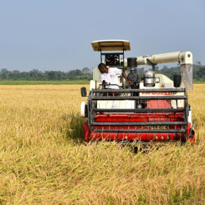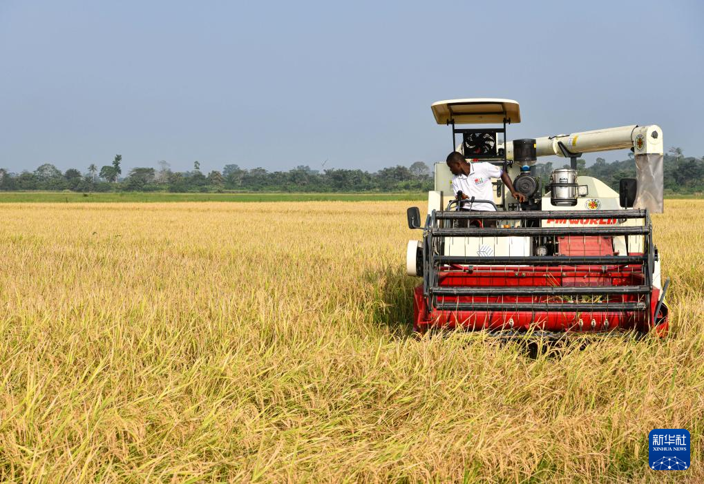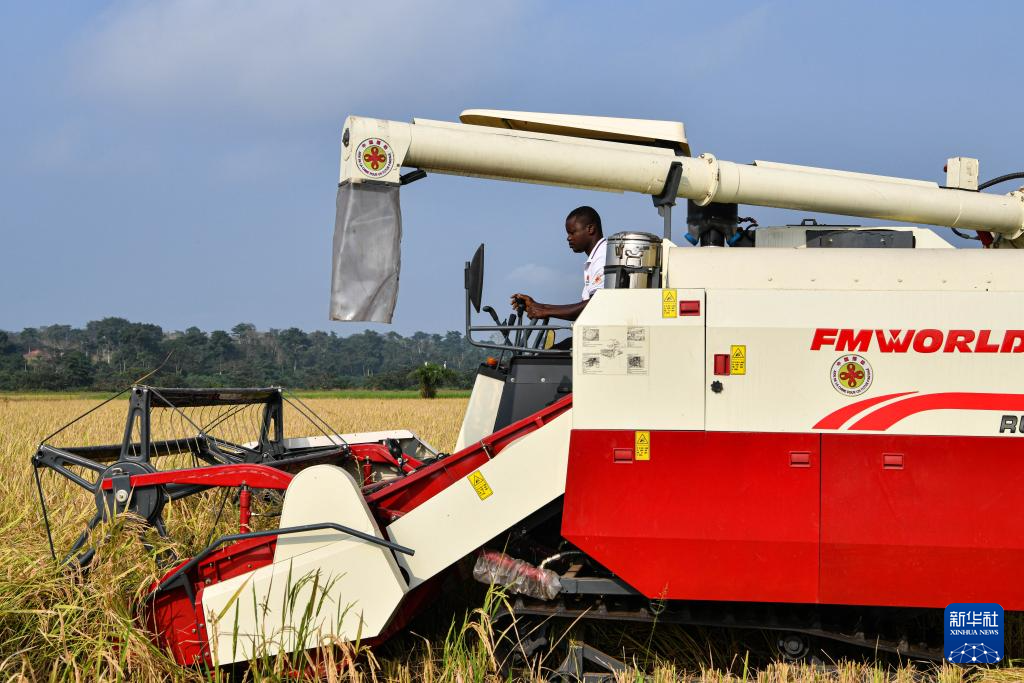 1月8日,稻农驾驶收割机准备在科特迪瓦南部迪沃省格格杜垦区收割水稻。