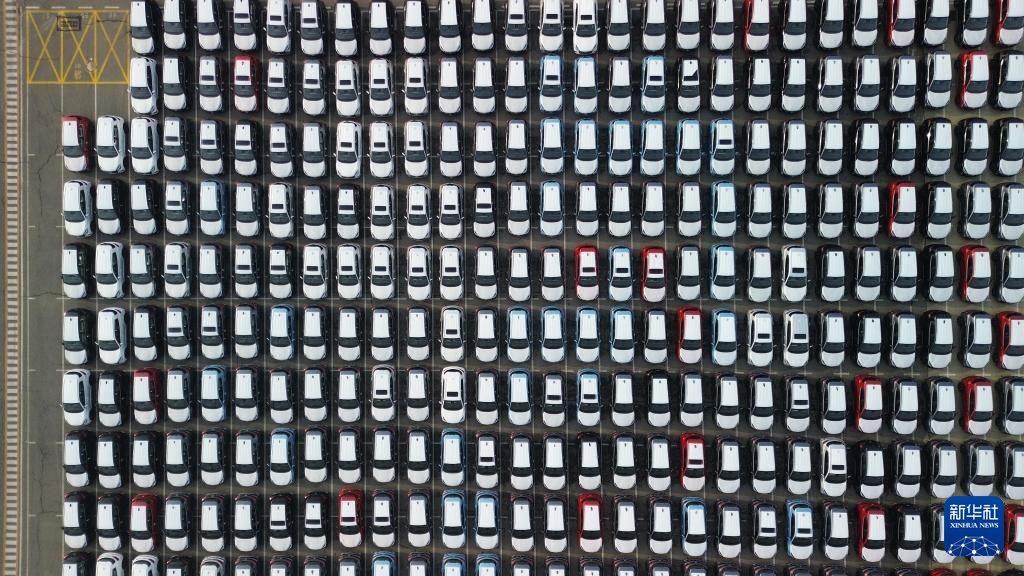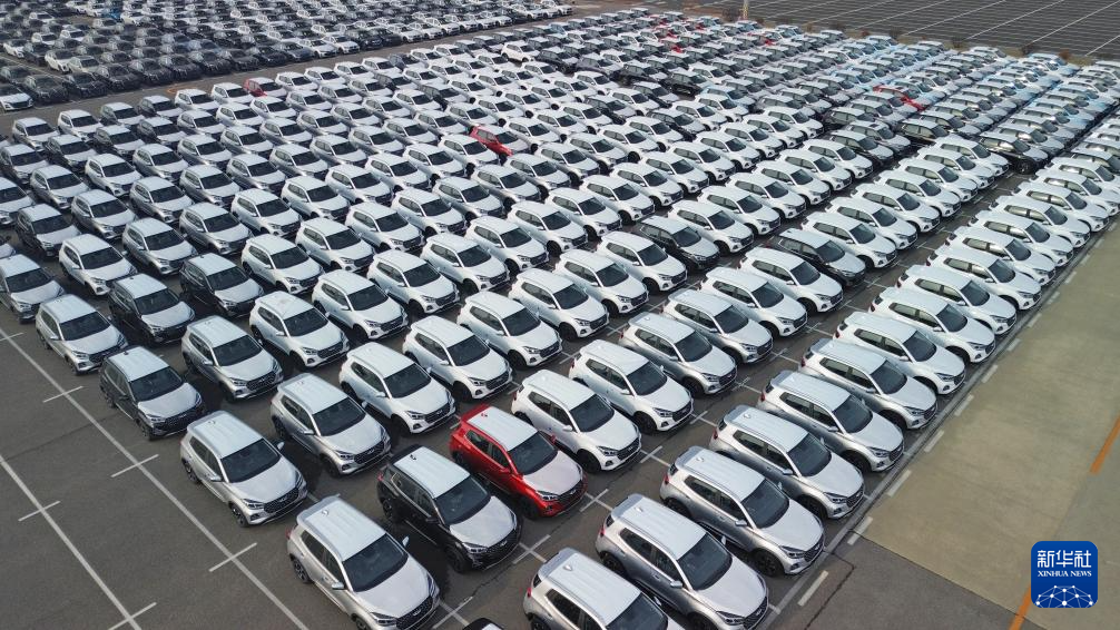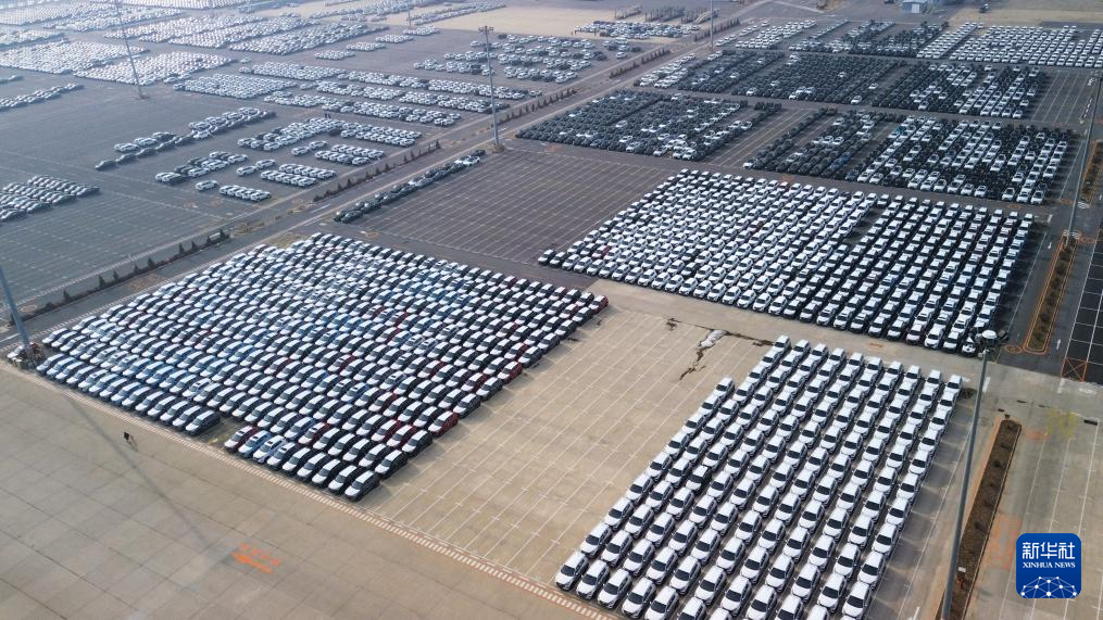 1月16日拍摄的停放在大连港大连汽车码头有限公司港口停车场的新车(无人机照片)。