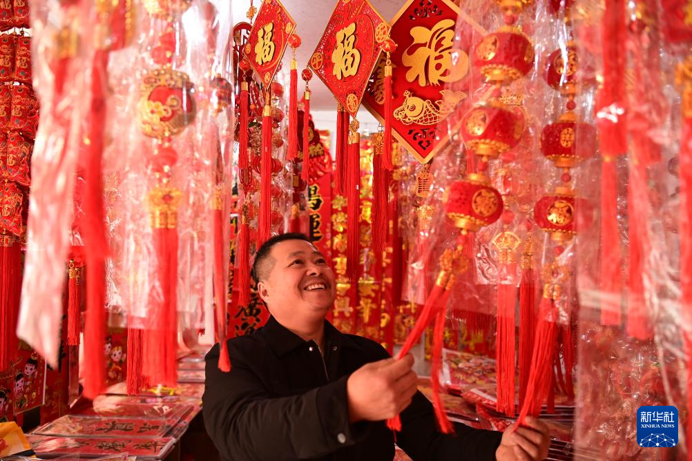 1月16日,顾客在江西省宜春市万载县一家年货商店选购春节饰品。