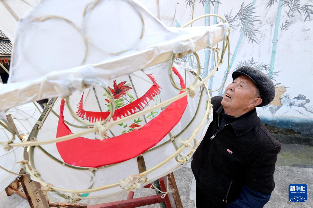 1月16日,浙江省湖州市德清县莫干山镇筏头村村民在制作龙灯。