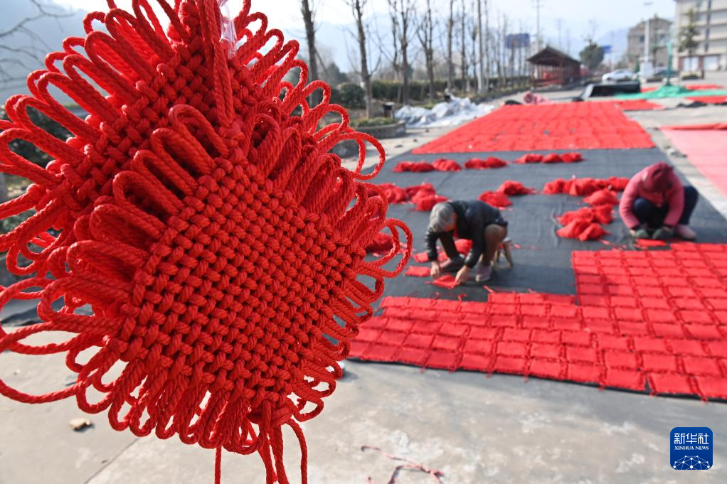 1月16日,浙江省东阳市画水镇画南村村民在晾晒“中国结”。