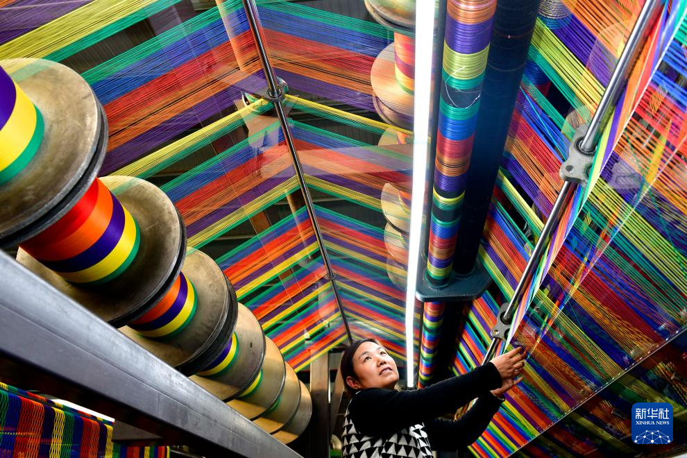 在山东省惠民县李庄镇一家绳网企业,工作人员在生产绳网产品(2023年11月22日摄)。