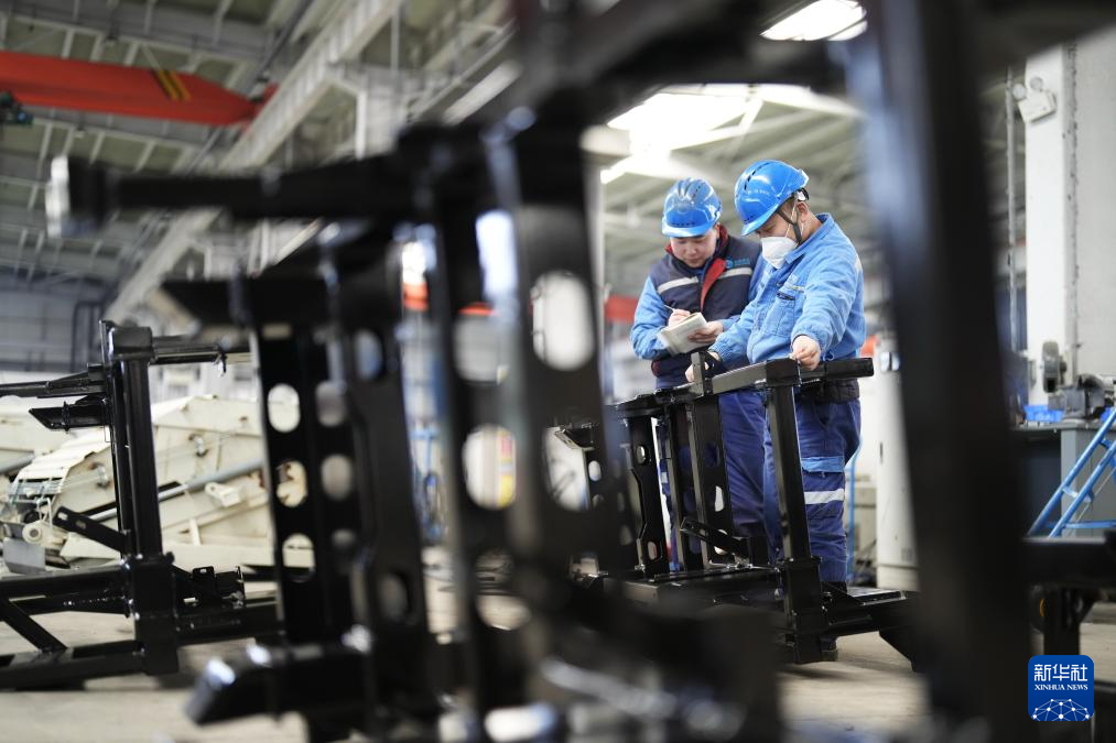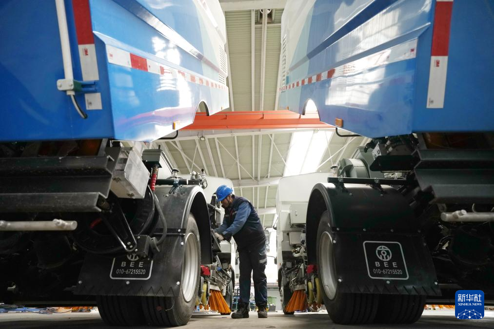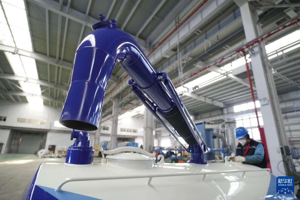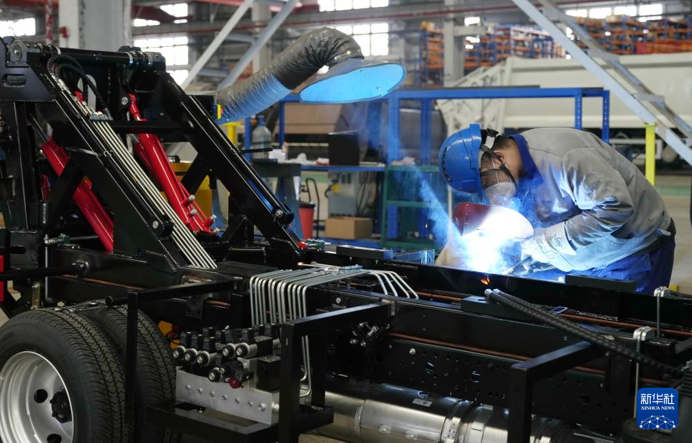1月16日,北京环卫集团环卫装备乐亭有限公司的工人在组装车间内工作。