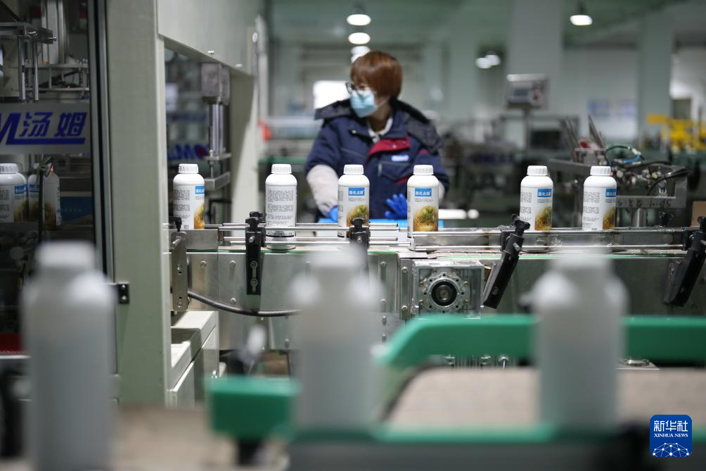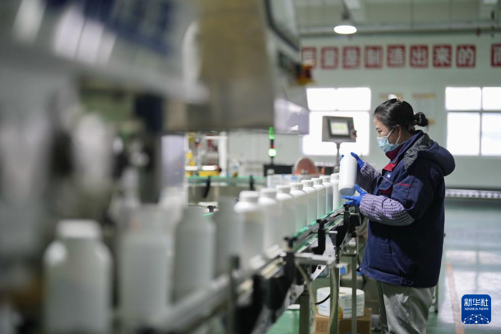 1月16日,燕化永乐(乐亭)生物科技有限公司的工人在生产线上工作。