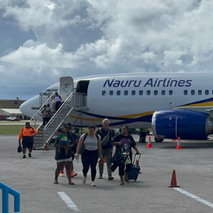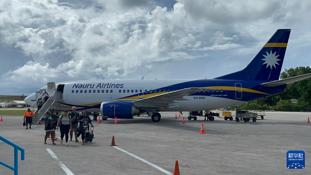 1月17日,新华社记者乘坐的客机抵达瑙鲁机场。