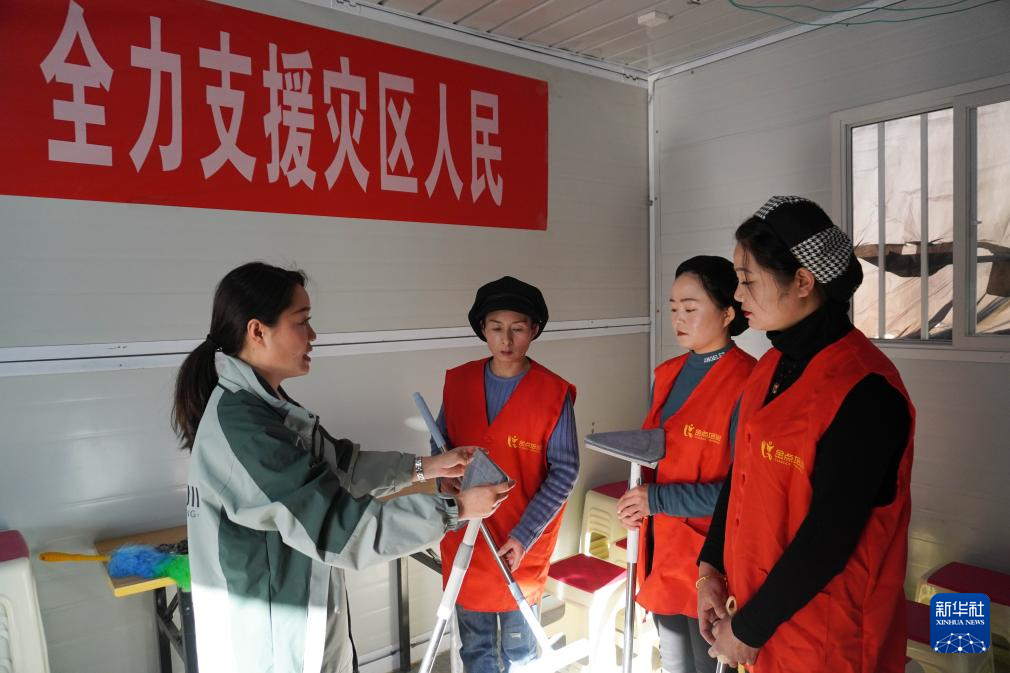 1月16日,在甘肃省临夏州积石山县大河家镇陈家村安置点,群众参加保洁技能培训班。