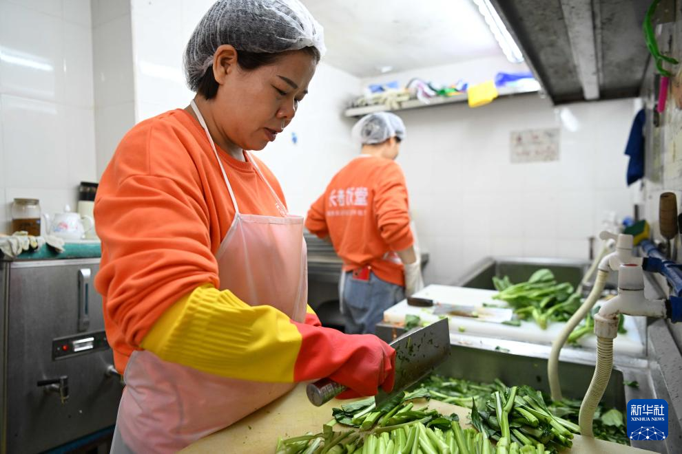 1月17日,在广州市越秀区洪桥街道三眼井社区长者饭堂,工作人员在准备食材。