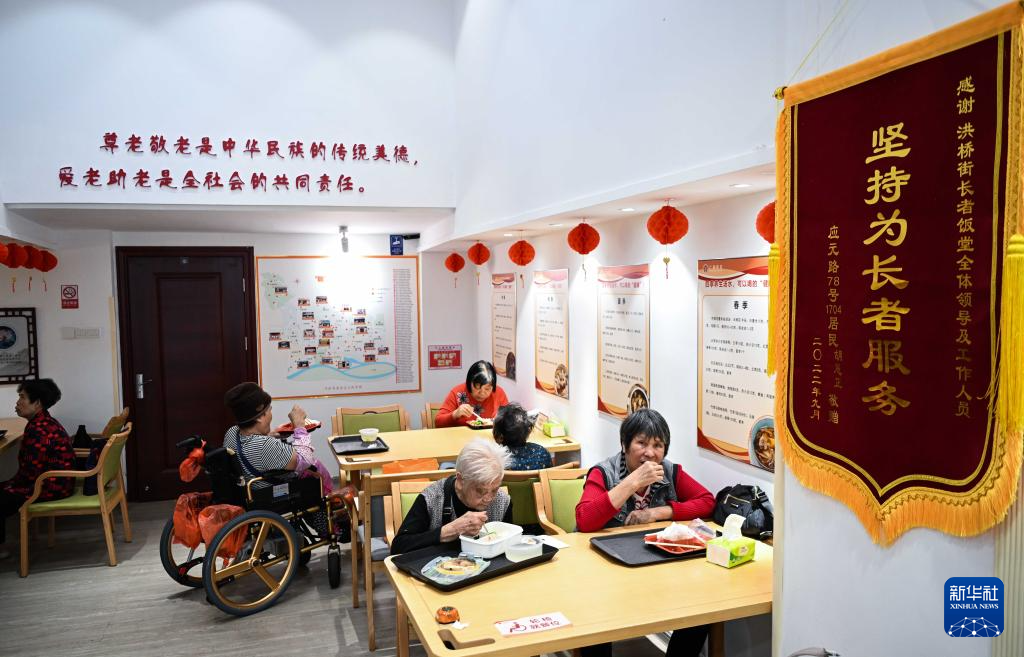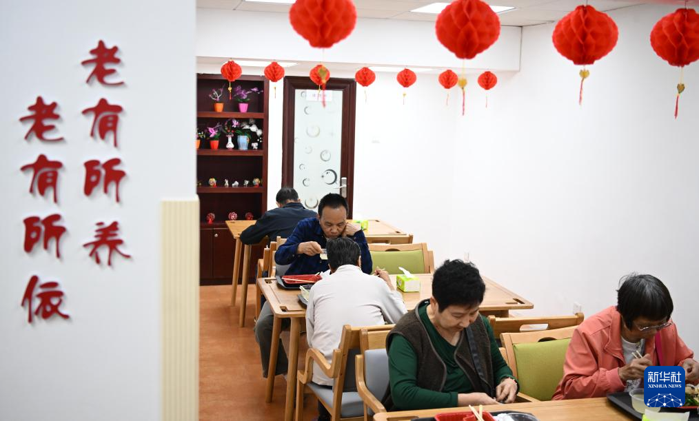 1月17日,在广州市越秀区洪桥街道三眼井社区长者饭堂,老年人在用餐。