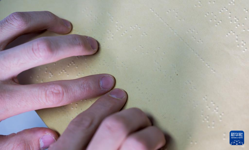 2024年1月17日,视力障碍人士周昊雨展示自己用盲文记录的意大利歌曲的歌词。他在木马童话黑暗餐厅工作了8年,从兼职服务员、音乐演奏,成长为餐厅经理。现在是一家艺考机构的声乐老师。