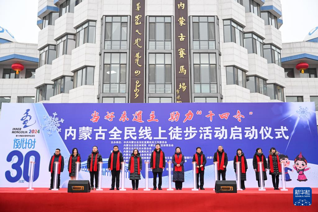 这是1月18日拍摄的“当好东道主 助力十四冬”内蒙古全民线上徒步活动启动仪式现场。