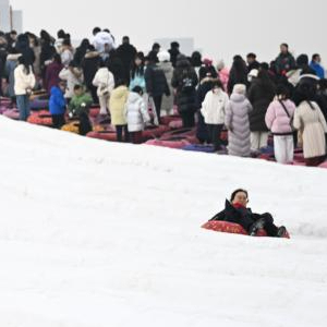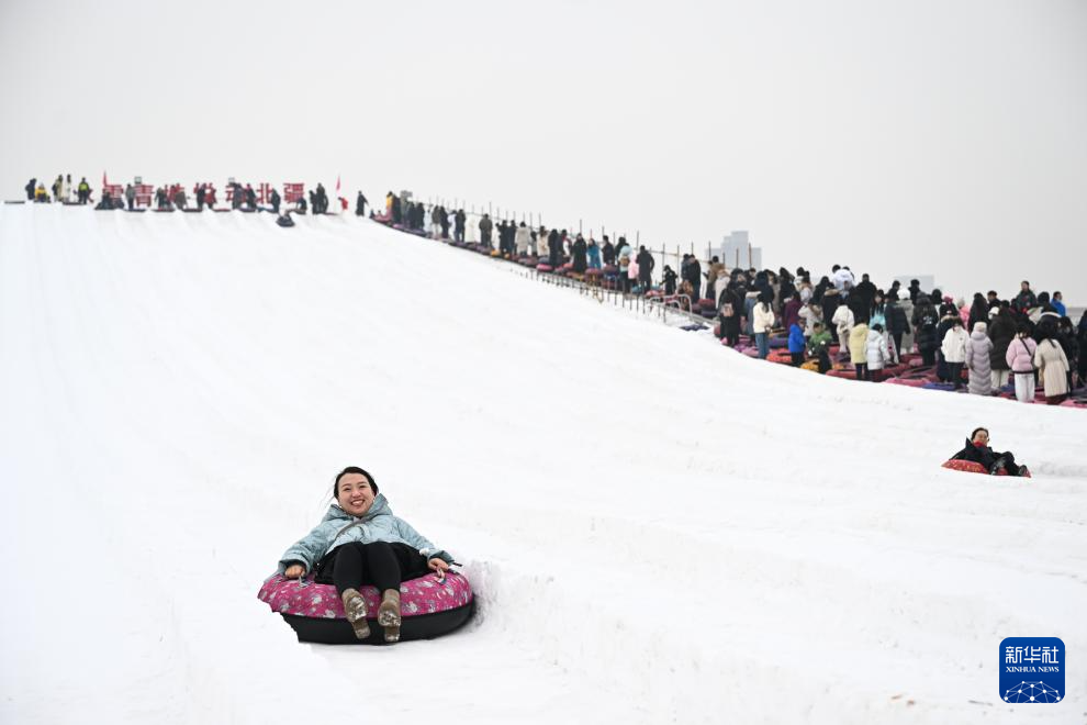 1月18日,市民在内蒙古赛马场滑雪圈。