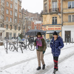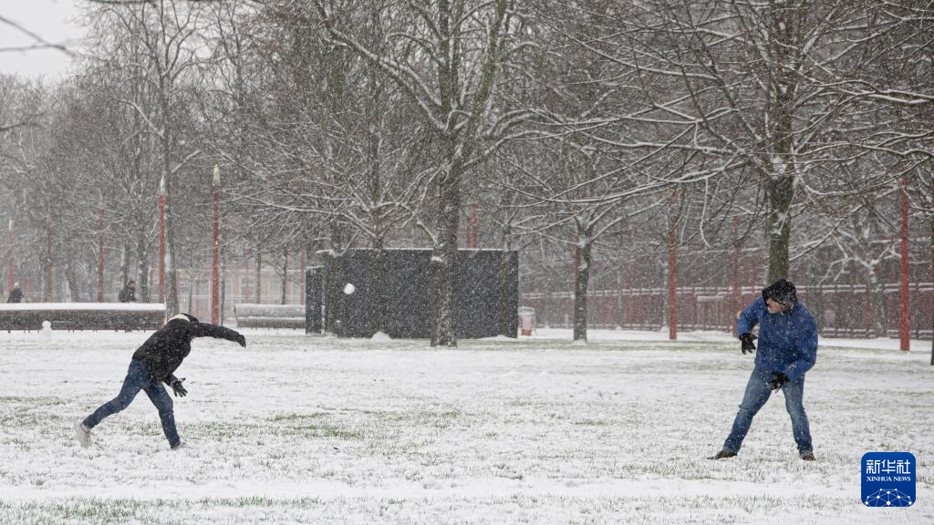 1月17日,在法国北部城市里尔,人们在雪中打雪仗。