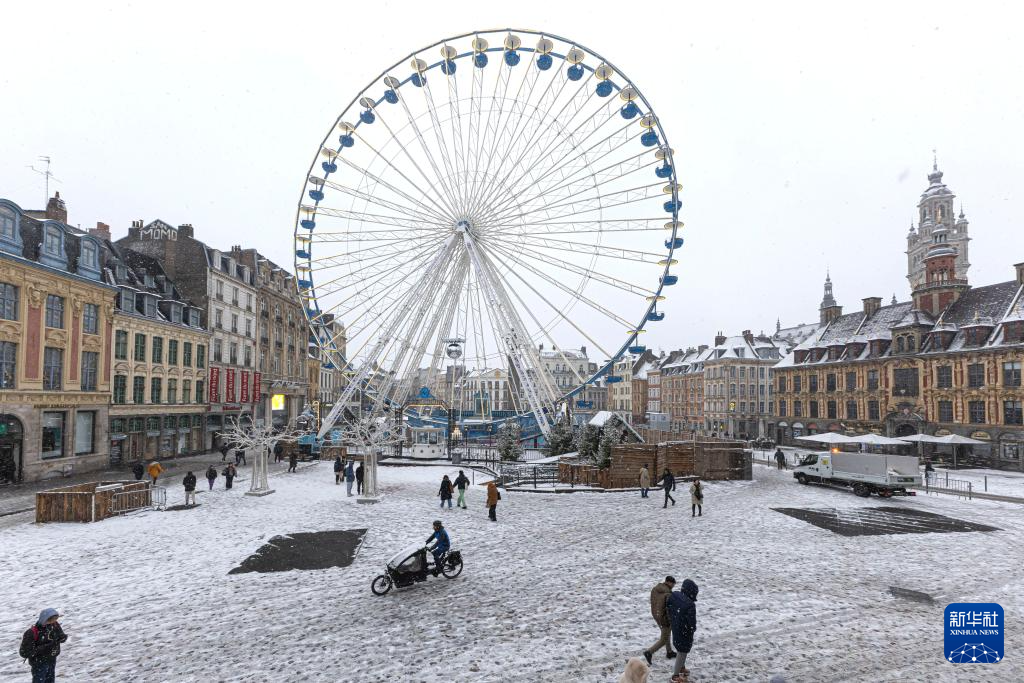 受席卷全法的寒流影响,法国北部地区17日迎来降雪天气。