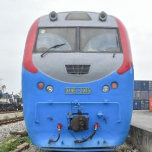 这是1月15日在越南河内东英车站拍摄的中越班列火车头。