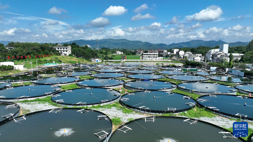 这是在黄山市歙县郑村镇拍摄的一处鳜鱼养殖基地(2023年7月17日摄,无人机照片)。