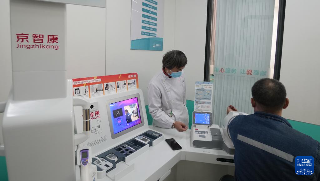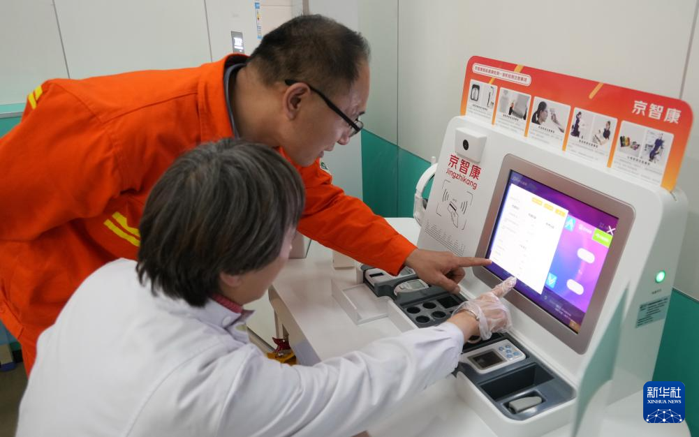 矿工在长城五矿的“健康驿站”使用智能健康设备进行健康检查(1月17日摄)。