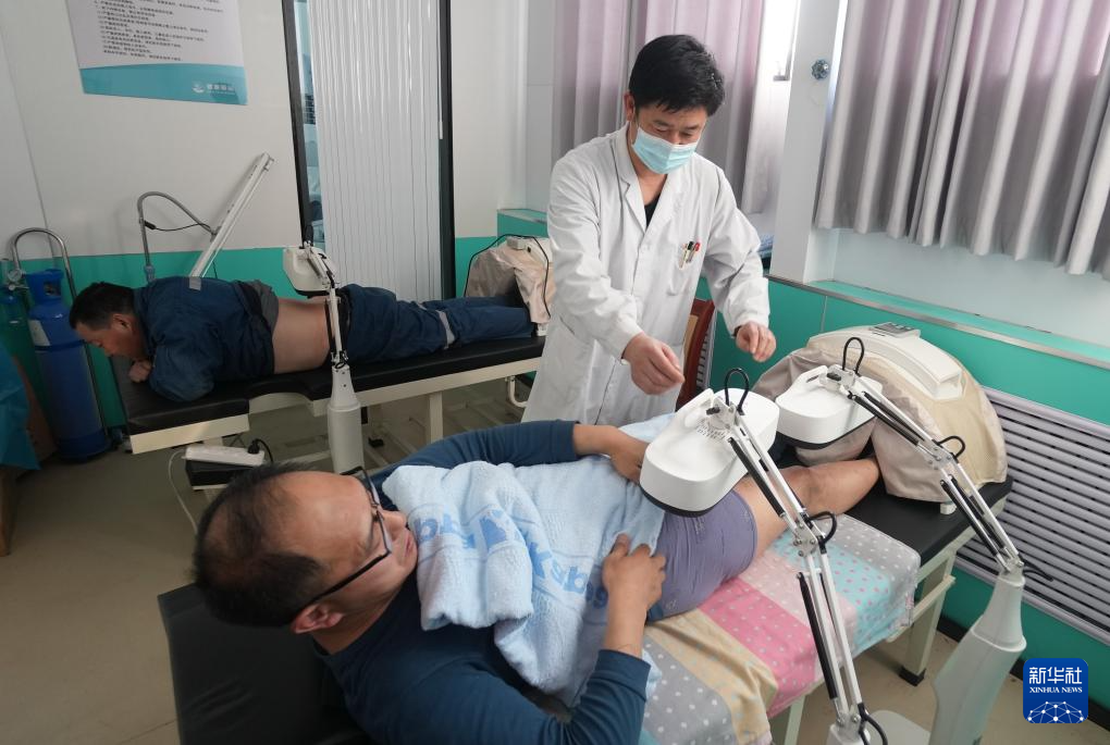 长城五矿的矿工在“健康驿站”内进行理疗康复(1月17日摄)。