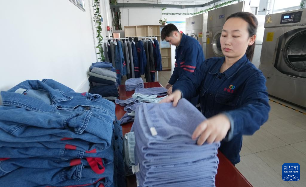 长城五矿“健康驿站”为矿工设置了工作服免费清洗流程,保障矿工随时拥有干净的工作服(1月17日摄)。