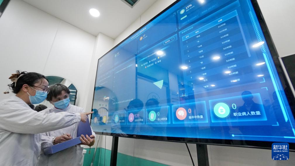 长城五矿的“健康驿站”医护人员在比对录入矿工健康预警信息(1月17日摄)。