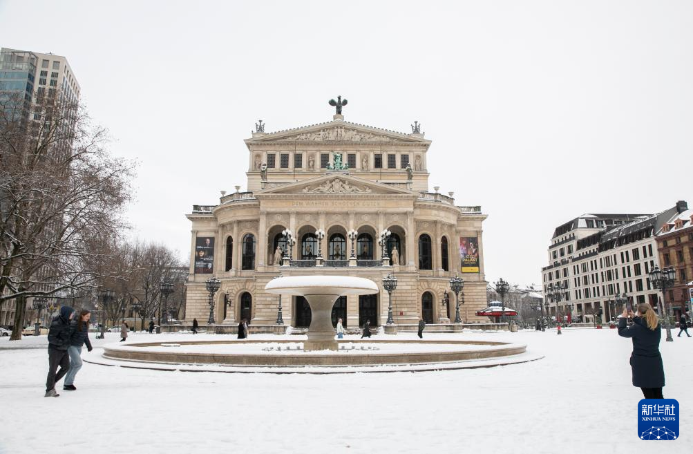 1月18日,一名女子在德国法兰克福老歌剧院前拍照。