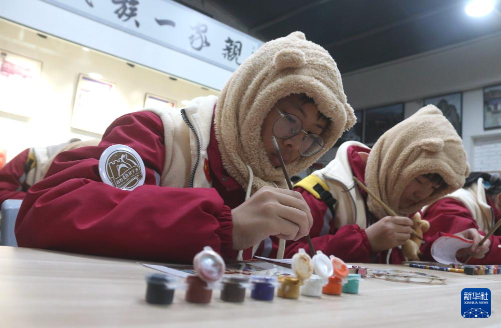 1月17日,在甘肃敦煌莫高里工匠村研学课堂,研学团队学员学习临摹敦煌壁画。