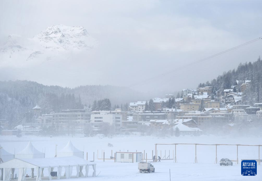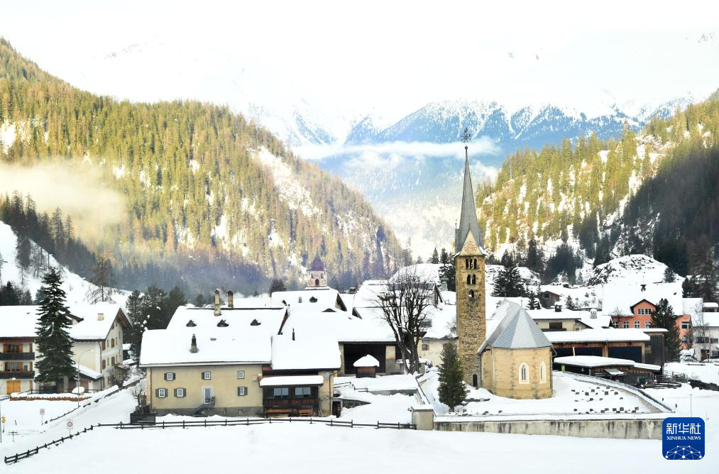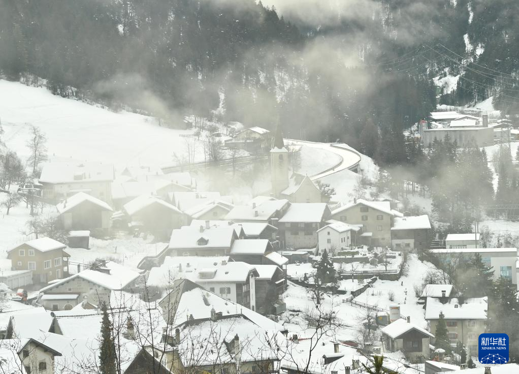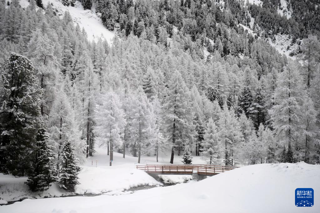 这是1月18日在瑞士东部圣莫里茨通往达沃斯的火车上拍摄的窗外雪景。