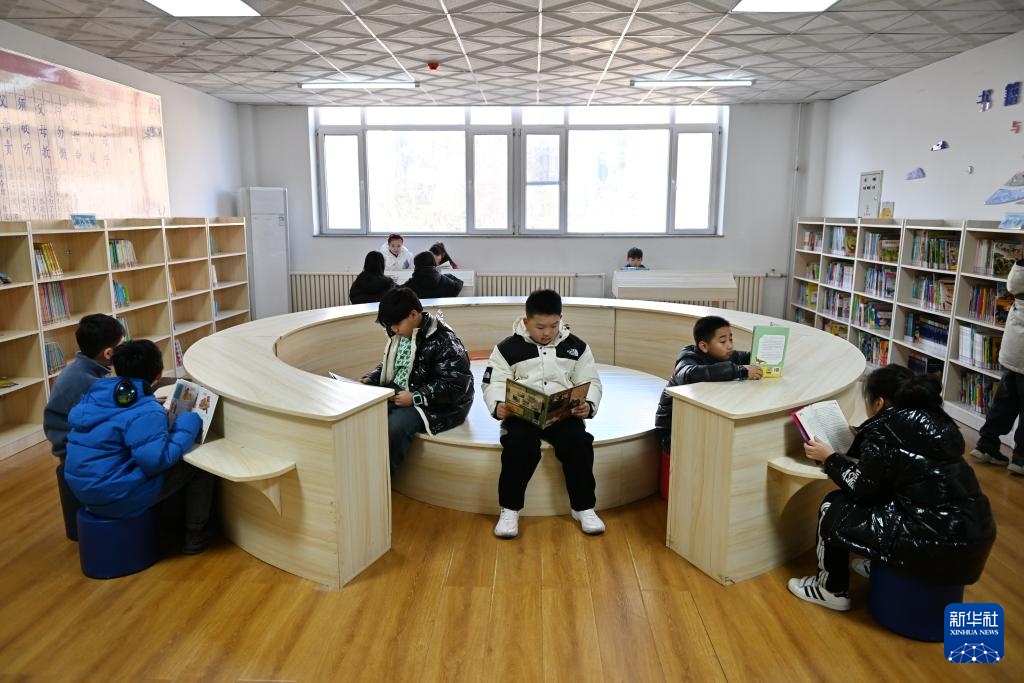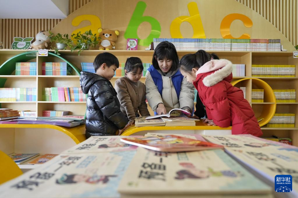 1月18日,志愿者在河北省滦州市一家城市书房内给孩子们读绘本。