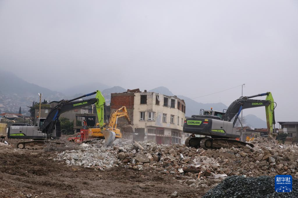 2024年1月18日,在土耳其安塔基亚,工程车辆在一处废墟施工。