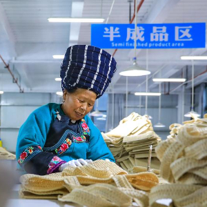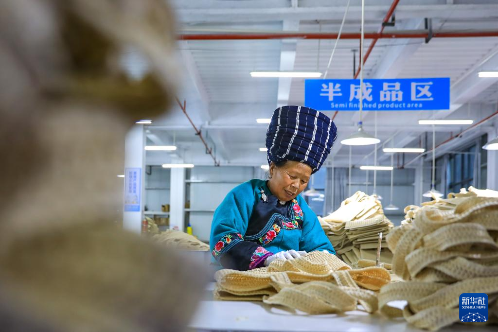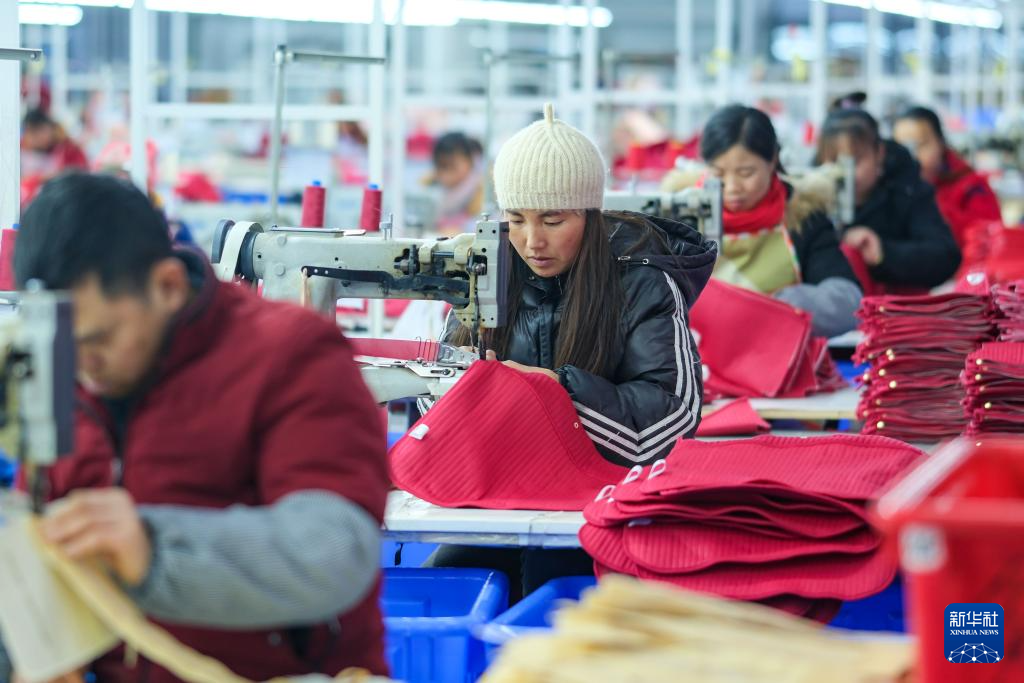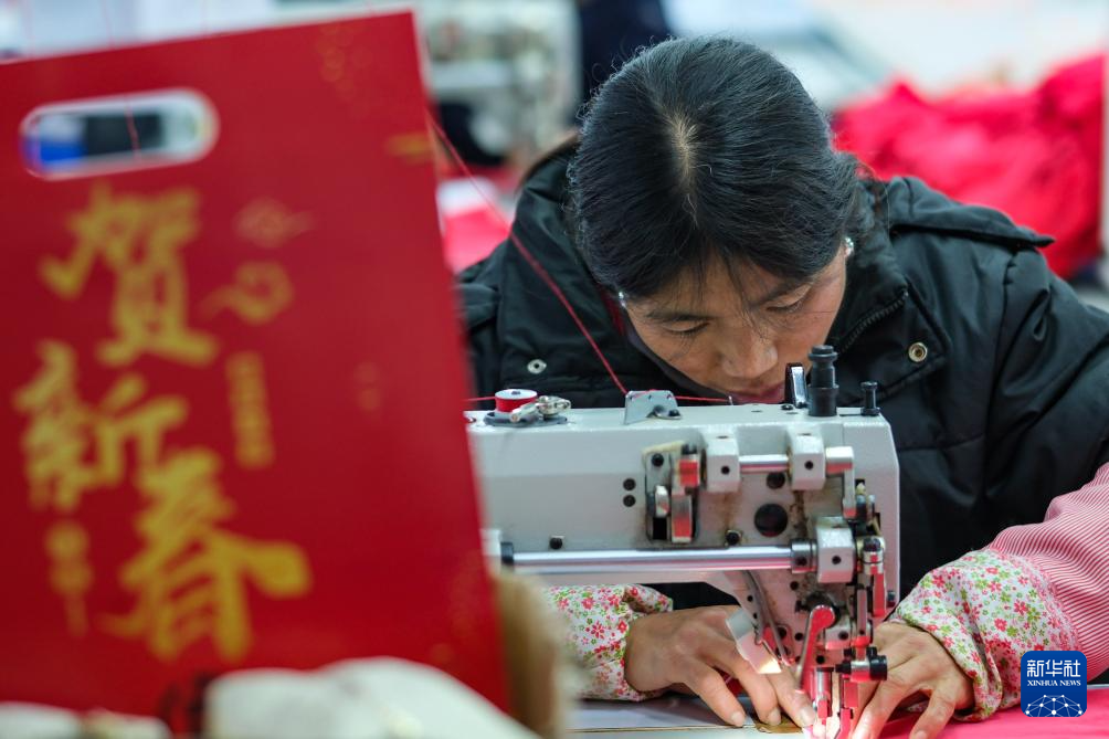 1月18日,社区居民在红安社区的乡村振兴就业车间工作。