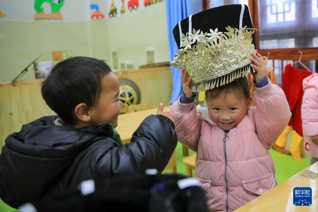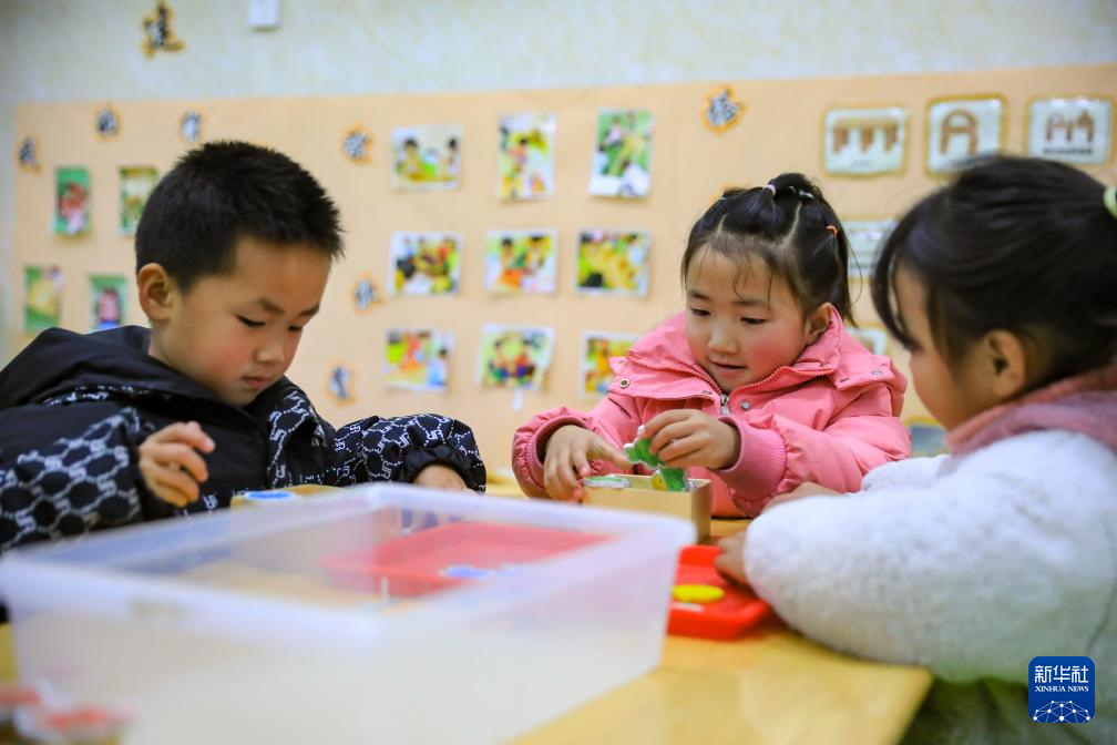 1月18日,小朋友在红安社区幼儿园玩耍。