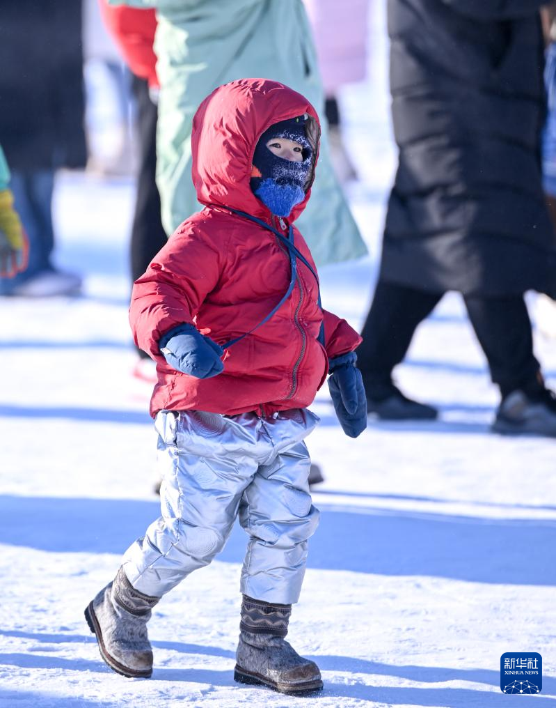 1月19日,一名儿童在内蒙古呼伦贝尔市海拉尔河西新区一处公园参加户外活动。