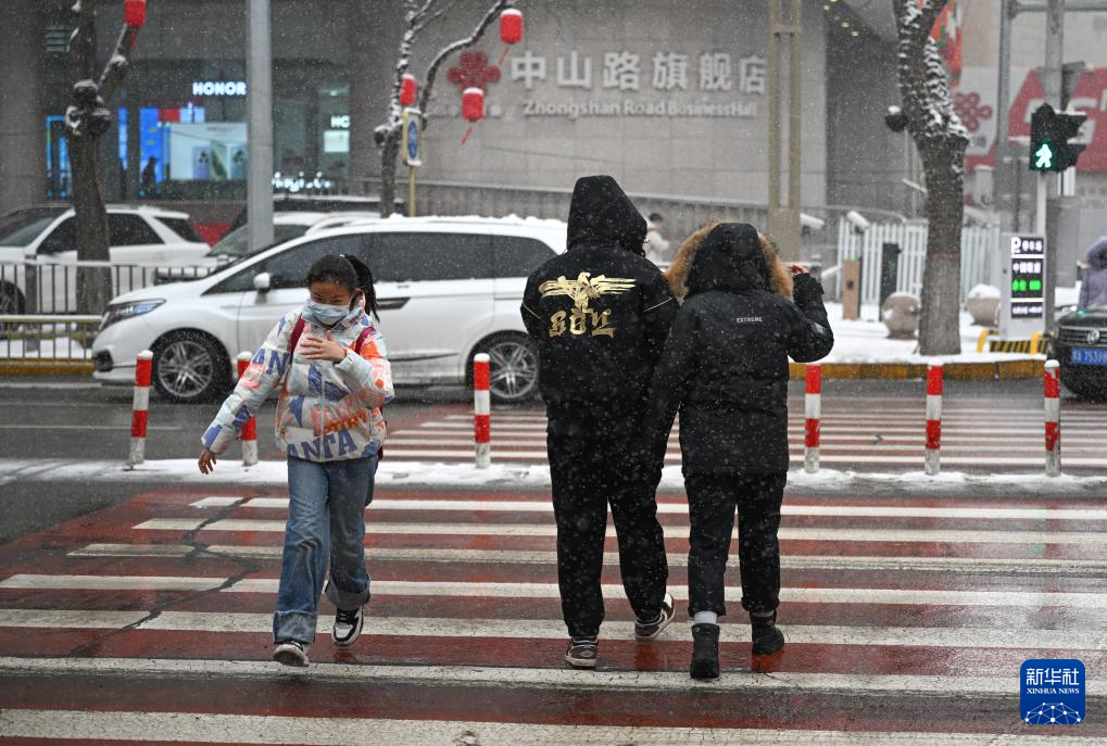 1月19日,行人通过内蒙古呼和浩特市中山东路一处人行横道。