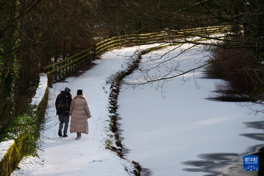 1月19日,人们在英国英格兰北部的雪地上行走。
