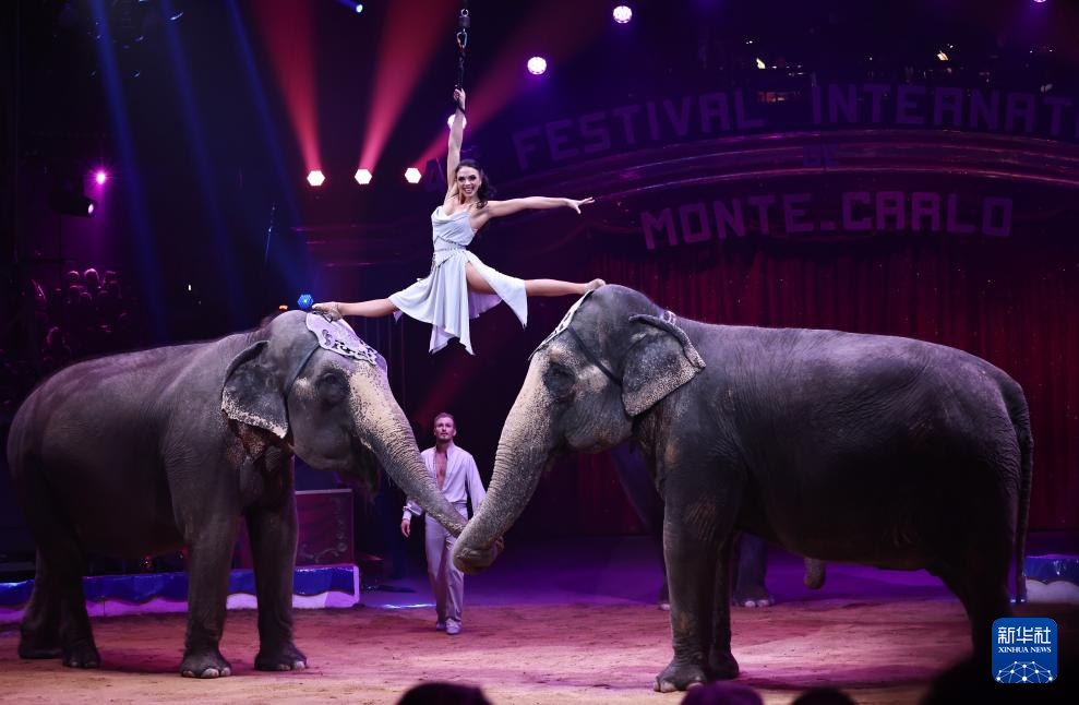 1月19日,演员在摩纳哥蒙特卡洛举办的第46届蒙特卡洛国际马戏节上表演。