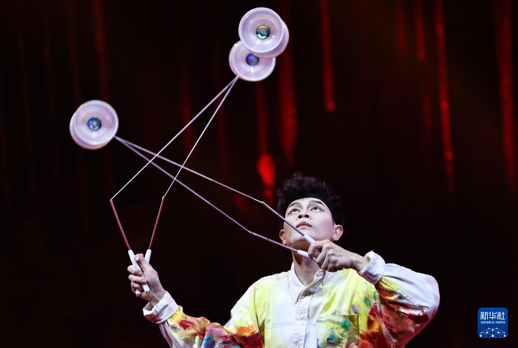 1月19日,在摩纳哥蒙特卡洛举办的第46届蒙特卡洛国际马戏节上,武汉杂技团演员表演节目《扬帆追梦·浪船》。