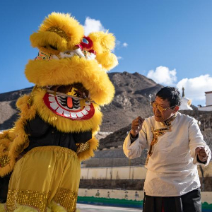 西藏昌都市洛隆县平均海拔约3700米,曾是茶马古道上的重要驿站,也是汉藏交往的重要通道。在洛隆县硕督镇,当地百姓将热巴舞、锅庄舞等西藏特色民族舞蹈元素融入早年传入当地的舞狮中,形成一种兼具汉藏特色的表演形式——硕督镇狮子舞。
