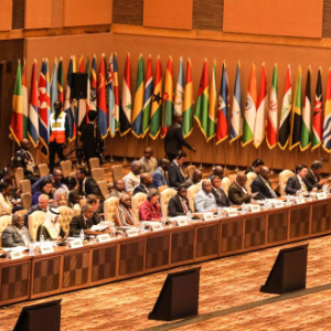 这是1月19日在乌干达首都坎帕拉拍摄的不结盟运动第19次峰会会场。