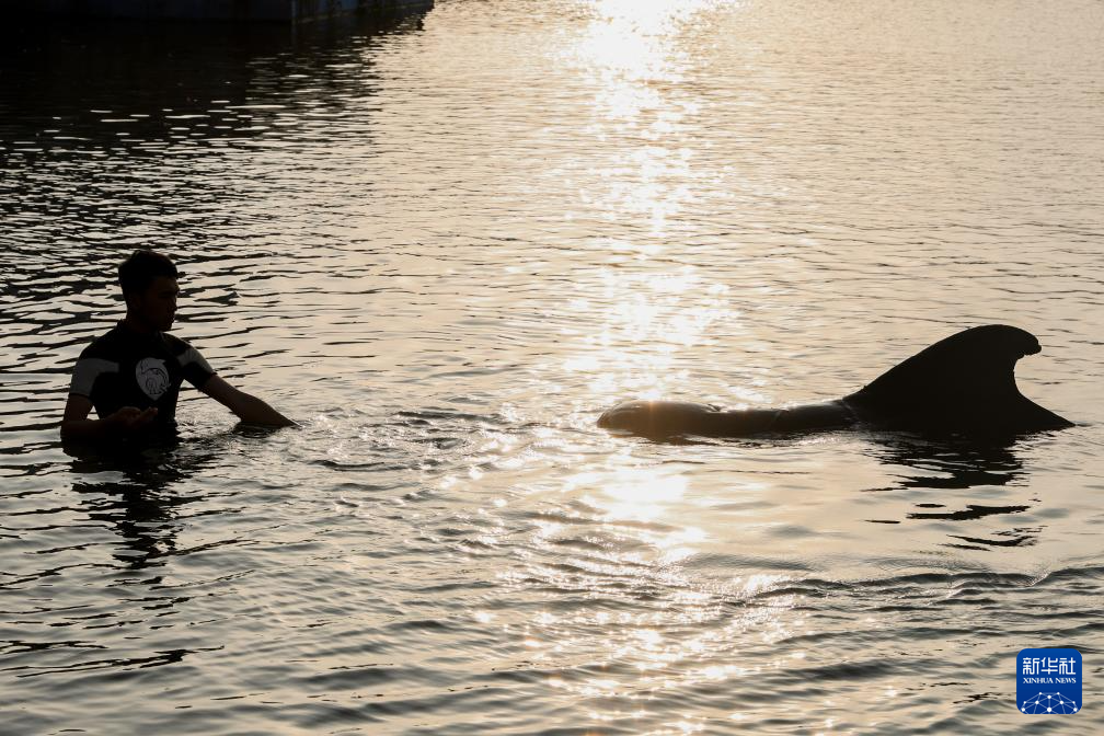 1月21日,因在海南三亚搁浅被救助的短肢领航鲸“海棠”开始尝试到户外水域活动。蓝丝带海洋保护协会的志愿者在三亚海昌生物保育中心的户外水域逐步排查安全隐患后,将短肢领航鲸“海棠”的活动区域扩大到户外水域,以帮助其体能恢复,为今后的放归海洋做进一步准备。该短肢领航鲸于1月3日在海南省三亚市海棠湾海滩搁浅,随后被救助,当时全身有多处明显外伤、生命体征不佳且不能自主游动。