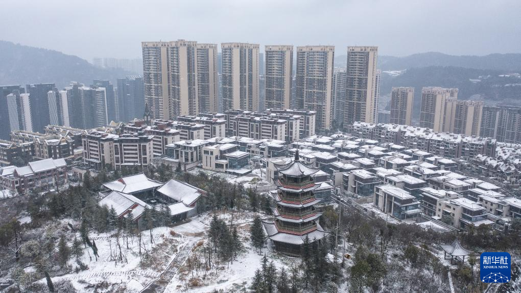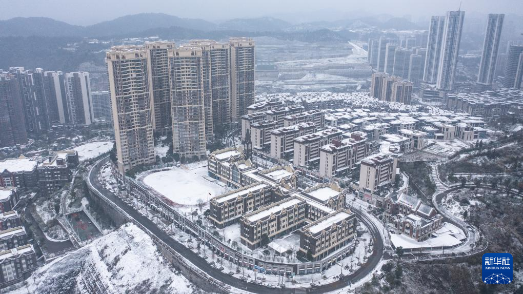 贵阳市云岩区未来方舟小区雪景(1月22日摄,无人机照片)。
