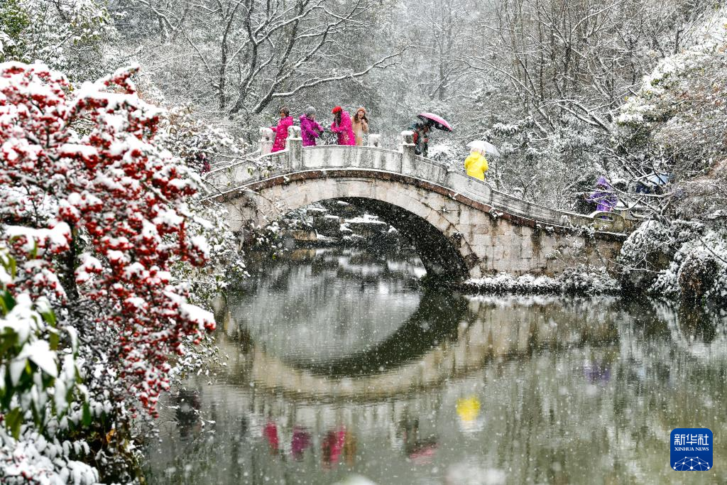 1月22日,市民在贵阳黔灵山公园赏雪。