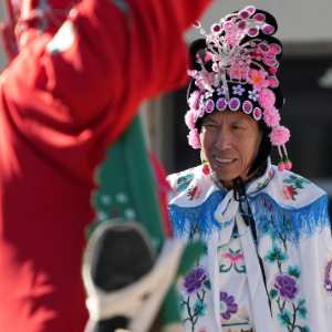 北京市大兴区魏善庄镇大狼垡村的农民在排练传统民俗节目“云仙圣会”(1月22日摄)。