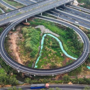 近期建成通车的沈海国家高速茂湛段竹园互通立交(无人机照片,1月23日摄)。