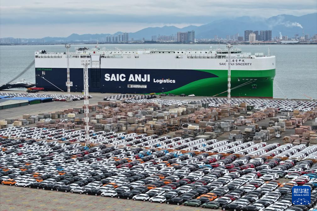 当日,在福建厦门东渡港区现代码头,3700余辆汽车陆续驶上“上汽安吉申诚”号汽车滚装船。船只1月24日将从厦门港起航,驶向欧洲,这是厦门口岸单航次最大批量汽车出口。近年来,厦门口岸凭借良好的营商环境,成为新能源产品出口的重要海运枢纽,2023年厦门港新能源汽车出口达8.5万辆。
