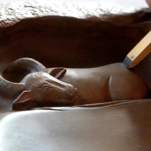 在山西省新绛县光村绛州澄泥砚生产基地,工艺师在雕刻澄泥砚(2020年12月28日摄)。