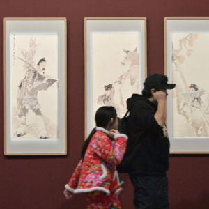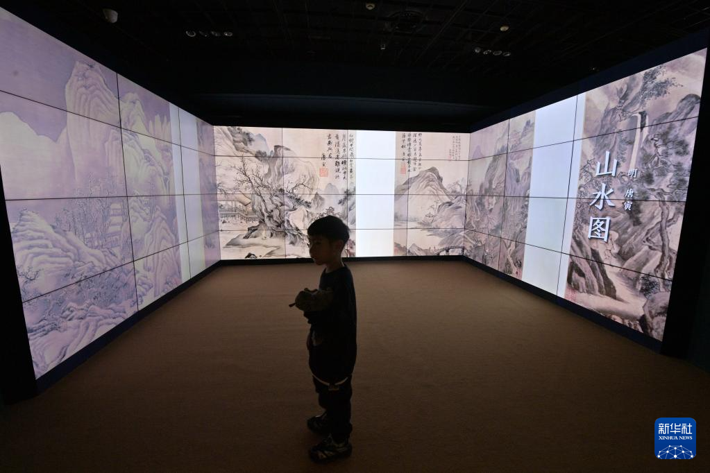 1月24日,小朋友参观“盛世修典‘中国历代绘画大系’主题展——‘久久为功’品读书画中的中华文脉”展览。