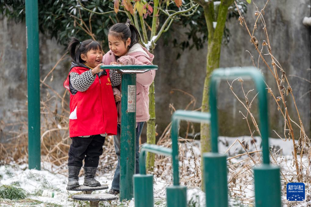 1月24日,小朋友在镇雄县塘房镇凉水村和平小学老校区安置点玩耍。