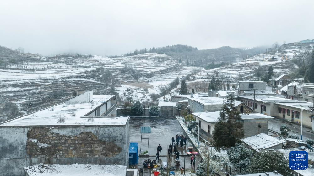这是镇雄县塘房镇凉水村和平小学老校区安置点(1月24日摄,无人机照片)。