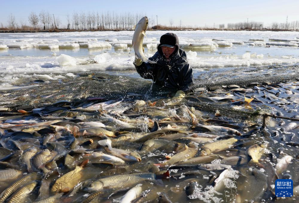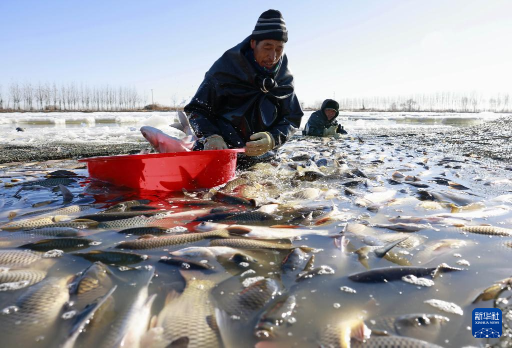春节临近,河北省唐山市丰南区的淡水鱼养殖户破冰捕鱼,供应节日市场,丰富百姓餐桌。近年来,当地利用丰富的水资源优势,大力发展水产养殖,促进农民增收,助力乡村振兴。