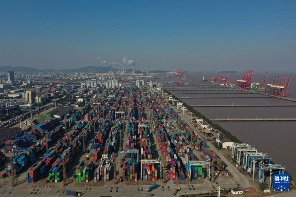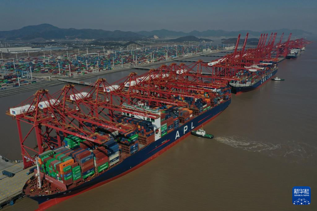 1月24日拍摄的宁波舟山港北仑港区集装箱码头(无人机照片)。